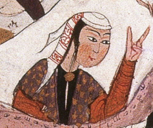 Firdevs’in Şahnamesinden bir minyatür. Kurt zafer işareti yapan kadınlar. Topkapı Sarayı minyatürü.