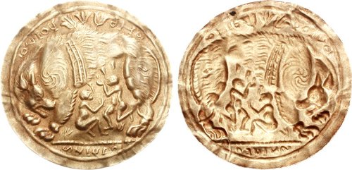 Kurt zafer işareti; Türk Kagan taşı, Miho Müzesi, Japonya.